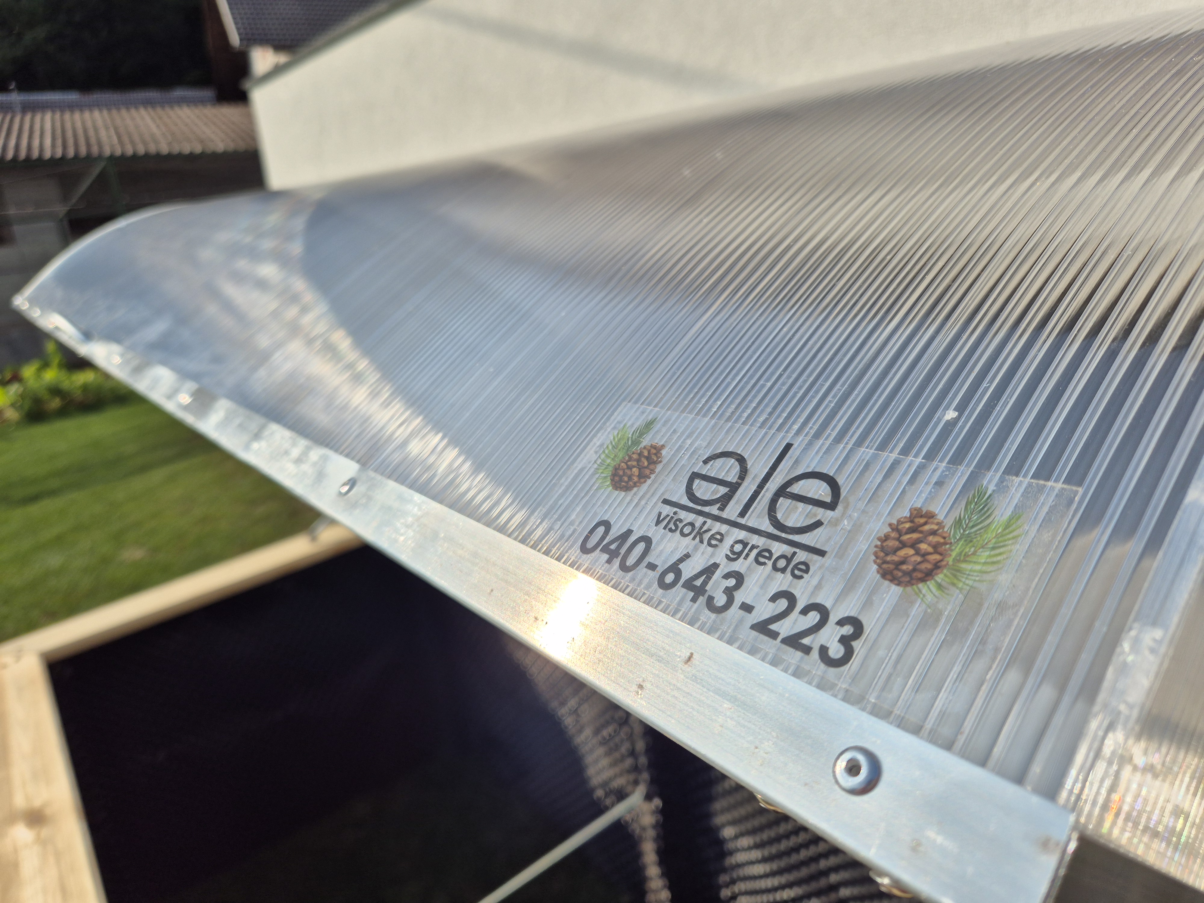 Pokrov iz polikarbonatnega stekla: Opremljena z visokokakovostnim polikarbonatnim steklom, ki zagotavlja odlično toplotno izolacijo in omogoča vrtnarjenje tudi v hladnejših dneh. Ta material učinkovito ščiti rastline pred nizkimi temperaturami in hkrati omogoča, da toplota in svetloba pridejo do vaših rastlin.